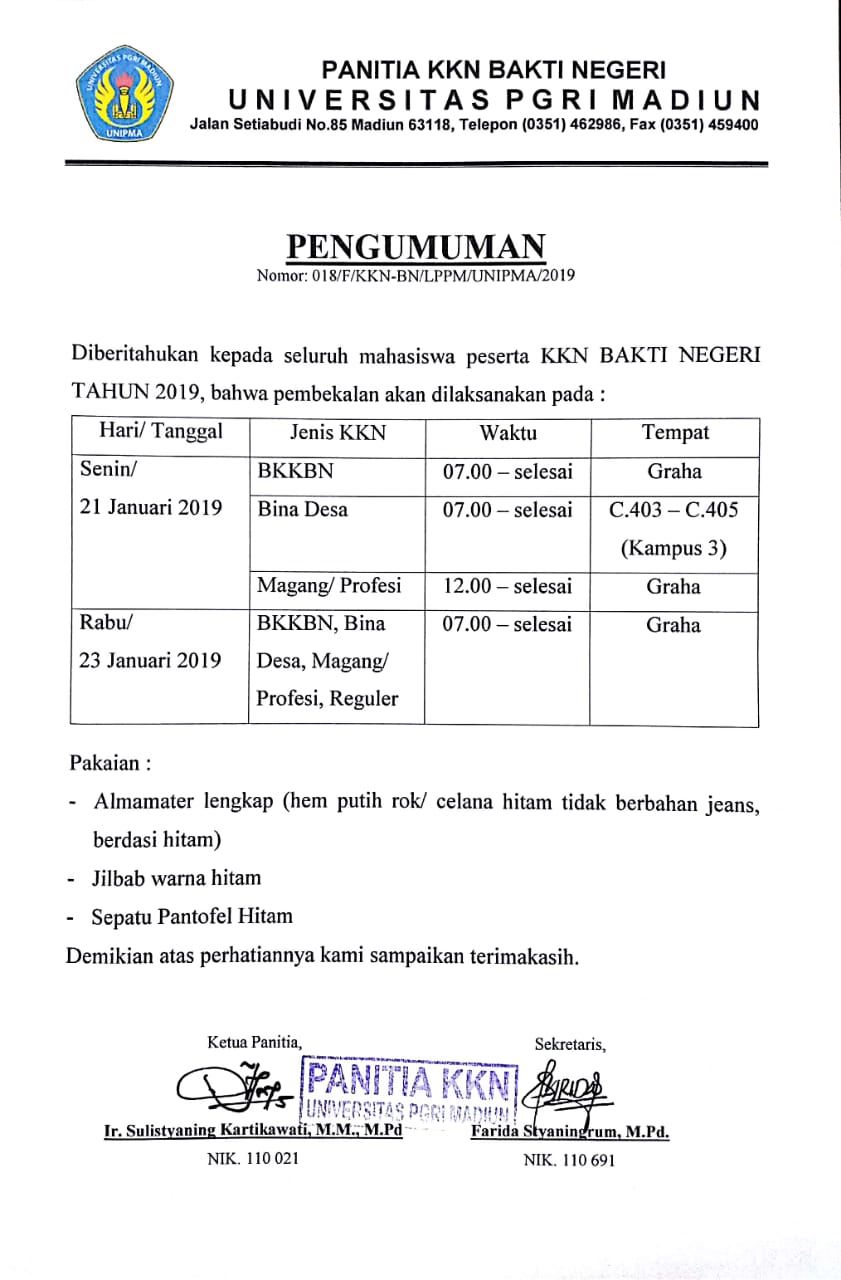PENGUMUMAN KETENTUAN PEMAKAIAN SERAGAM PEMBEKALAN (WAJIB)