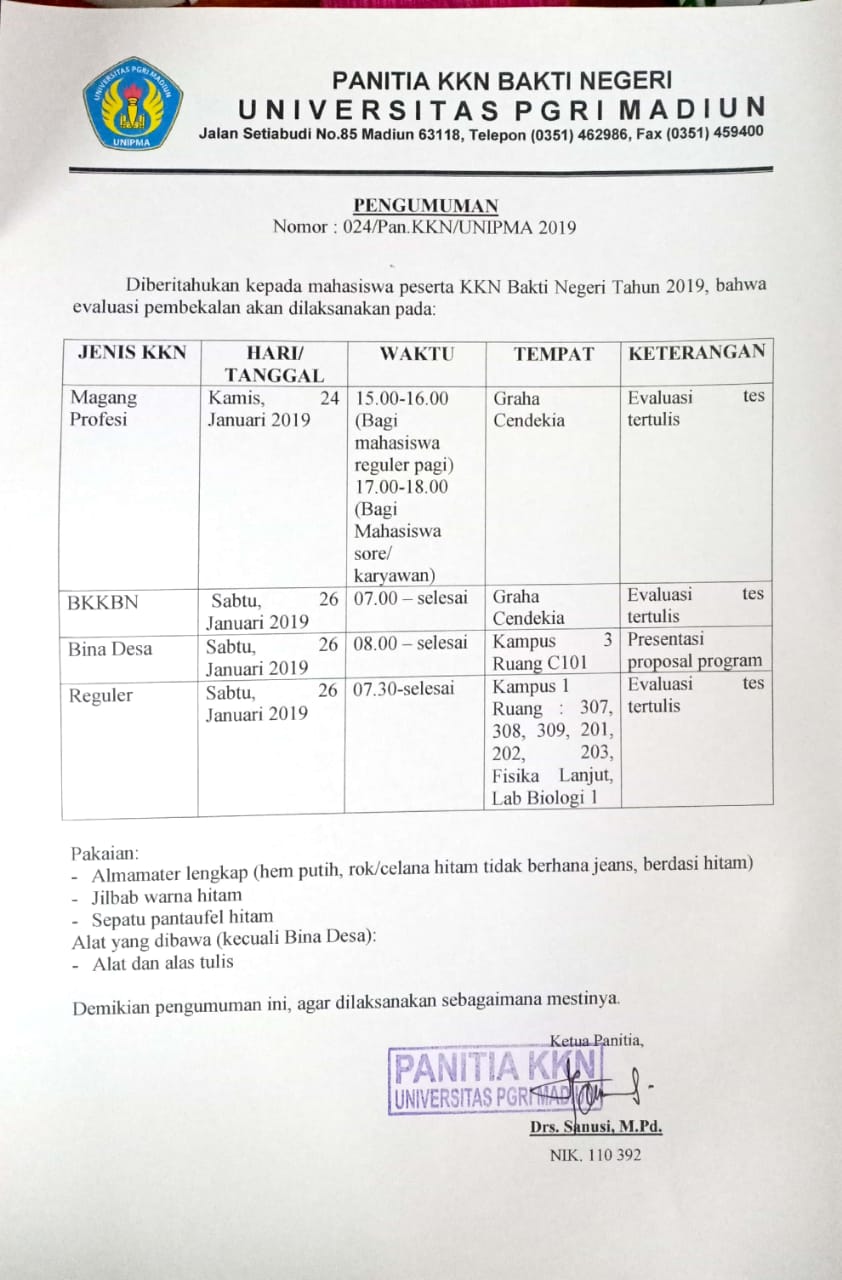PENGUMUMAN PELAKSANAAN EVALUASI KKN